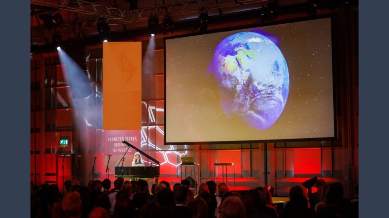 'Omarm De Chaos' live tijdens boekpresentatie Jan Rotmans dd 31 oktober 2023 in het Oude Luxor in Rotterdam
